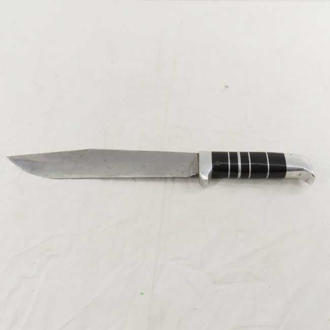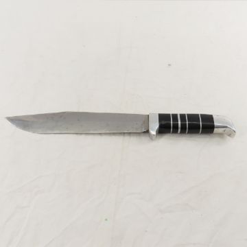 Unmarked Bowie Knife with Scabbard - 9.5" blade and 15" overall, unmarked knife and leather scabbard. very heavy Please read terms & conitions and ask questions before bidding.