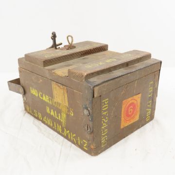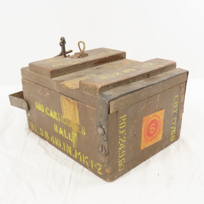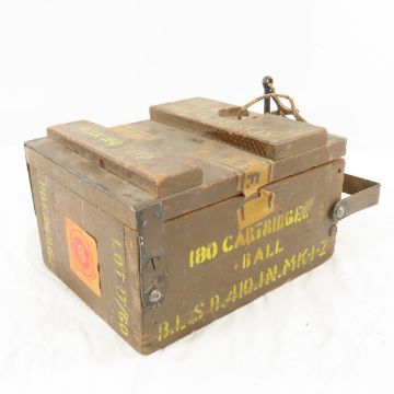 180 Ball Cartridges in Sealed can in Wood Crate - PA 44, cartridges SA ball, Lot 17/60, crate has metal hinges and key with rope handle Please read terms & conitions and ask questions before bidding.