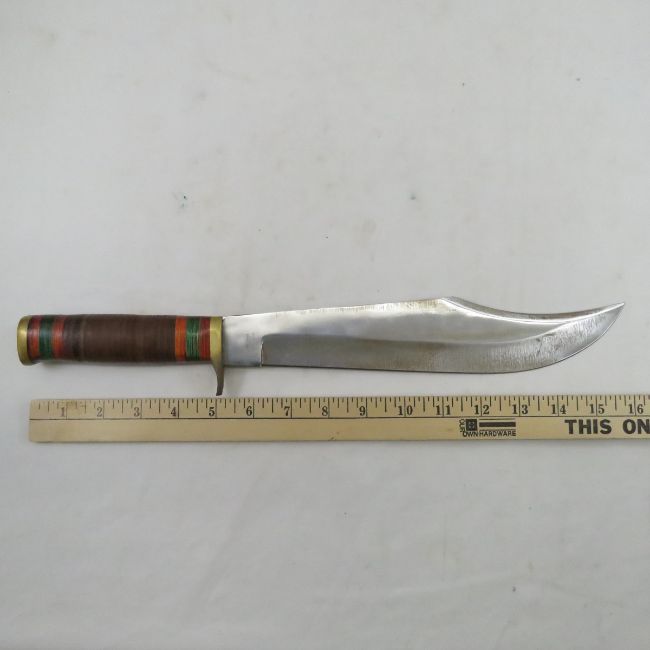 Military clothing, field gear, duffle bags, backpacks, knee pads,books and more. Military is mostly US, some WWII German, helmets, insignia & more. Edged weapons included many bayonets from around the world,swords, cane sword, African weapons, military knives, bowie knives, folding knives and more.