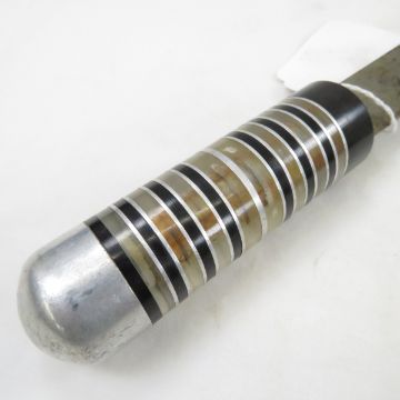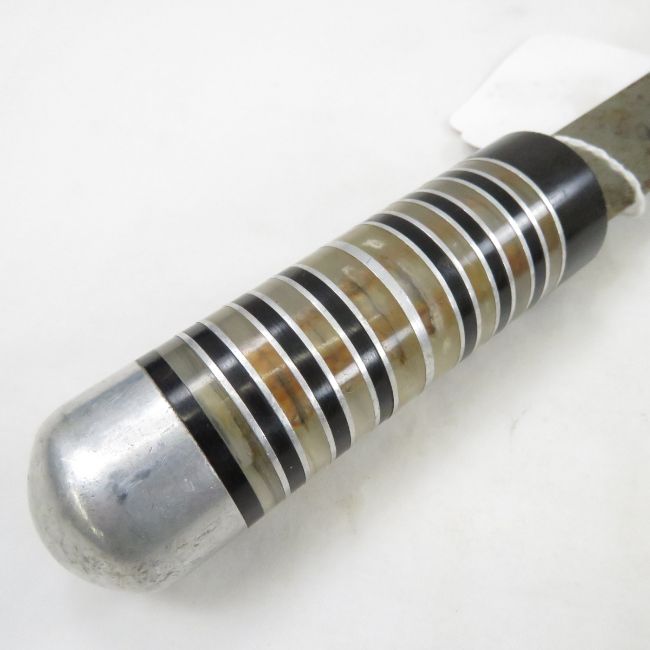 WW2 8 inch blade Theater Knife-With plexiglass, aluminum, & Micarta handle Please ask questions and read terms & conditions before bidding.