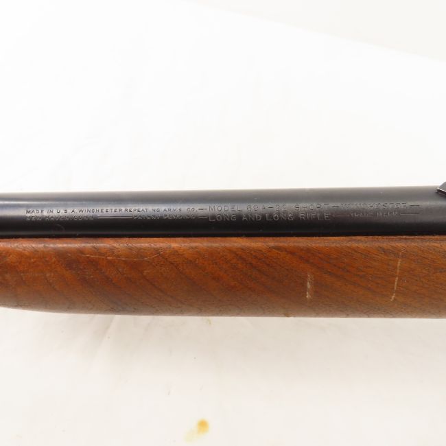 Winchester 69A .22 S,L,LR Bolt Action Rifle-25" barrel with front & rear sights, plain wood pistol grip stock, OAL 42", no SN#, 1 magazine, manufactured 1935-1963. C&R or FFL required. Please know local laws before bidding. Please ask questions and read terms & conditions before bidding.