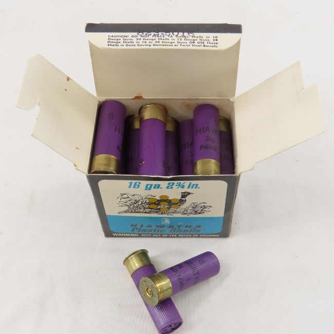 242 Assorted 16 GA Shotshells-1) 19 boxed paper shell Federal 2 3/4" Field Load 2 1/2 -1 - 8 2) 25 boxed 2 3/4" 3 1/4 - 1 1/8 -6 3) 49 boxed 2 3/4" 2 1/2 - 1 - 8 4) 112 boxed Peters high velocity 2 3/4"power piston 3 1/4 - 1 1/8 - 6 5) 2 loose 2 3/4" Remington Express 3 1/4 - 1 1/8 - 5 6) 3 loose 2 3/4" Remington Express 3 1/4 - 1 1/8 - 67) 25 loose Hiawatha 2 3/4" mag ACE 1 1/4 - 6 8) 7 loosed Paper shell 2 3/4" Hiawatha ACE Please ask questions and read terms & conditions before bidding.