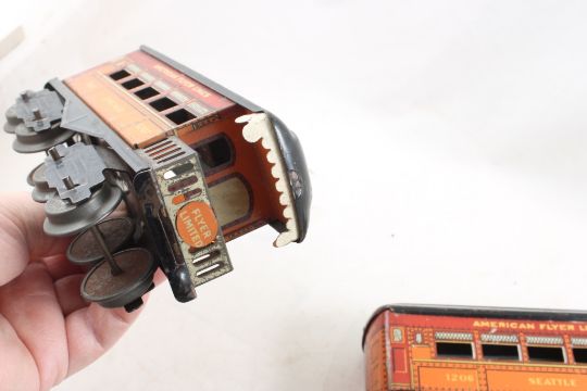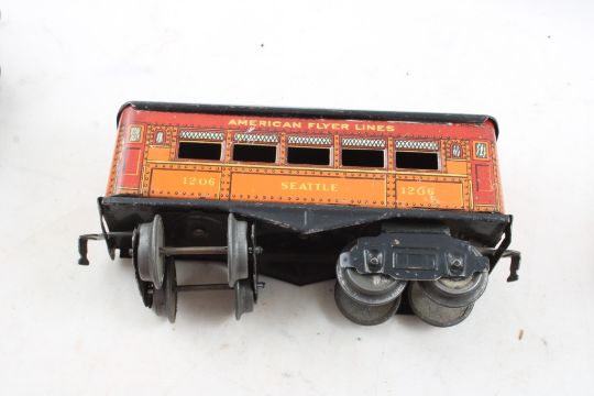 PreWar American Flyer Electric Train Set - #1218 Locomotive, #1205, 1206, 1207 Cars, Transformer and more. Untested. Motor turns freely. As pictured. Please ask questions and read terms & conditions before bidding.