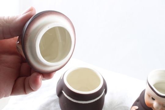 Hummel Friar Tuck Cream Sugar Salt Pepper Set - Sugar measures 4 3/4" Tall, Cream Pitcher 4" Tall & S&P Shakers measure 2 1/2" Tall. All as pictured. Please ask questions and read terms & conditions before bidding.