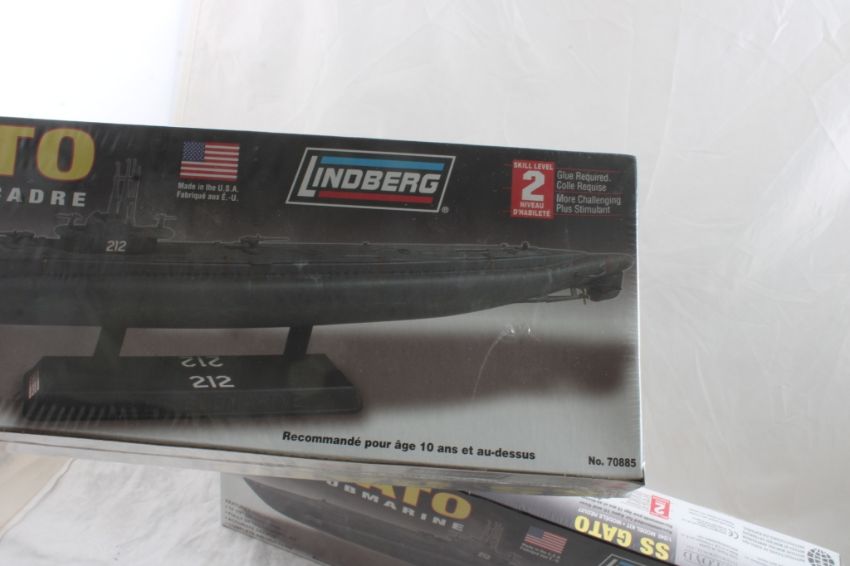 3 New/Old Stock Lindberg Models Plane & Subs - Curtiss Jenny 1/48 Scale Airplane, 2 SS Gato Fleet Submarine 1/240 Scale, all new in unopened boxes as pictured. Please ask questions and read terms & conditions before bidding.