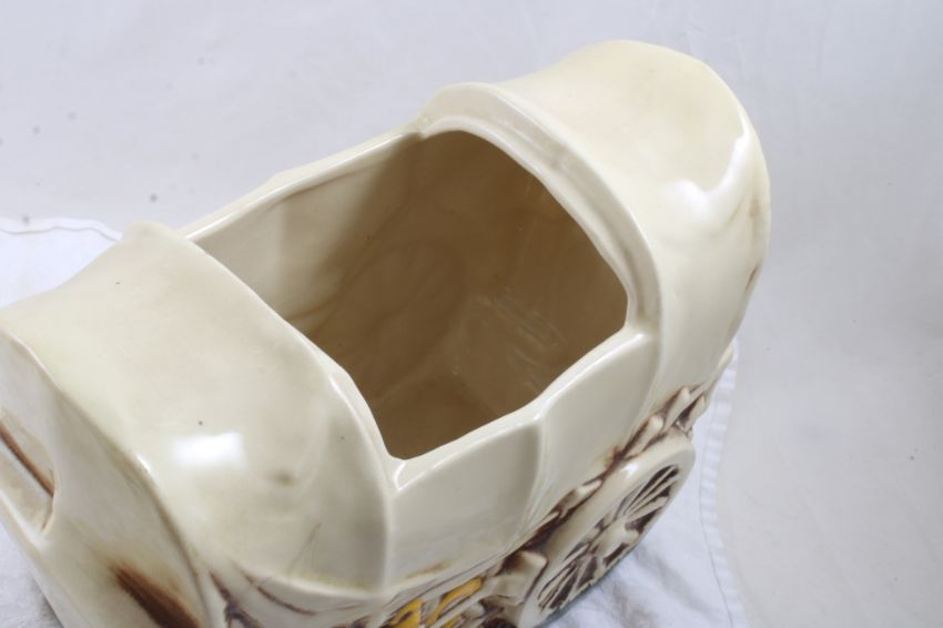 McCoy Covered Wagon Cookie Jar & More - Sailor Monkey Figural Cookie Jar measures 10 1/2" Tall and the Covered Wagon measures 8" Tall. Both as pictured. Please ask questions and read terms & conditions before bidding.