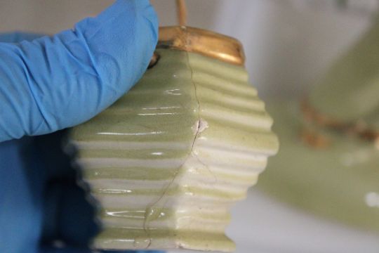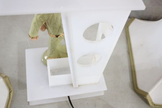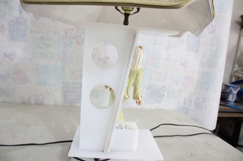 Heidi Schoop Asian Couple MCM Table Lamps - Heidi Schoop Ceramic Asian Man & Woman with Lantern (Man's Lantern has a couple chips & Woman's Lantern has a repair - see photos) Mid Century Modern Lamps with Lucite Base (base should light up too, but I do not havebulbs for the bases). The height of the lamps to top of finial is 29 1/8". Light Bulbs Not Included. As pictured. Please ask questions and read terms & conditions before bidding.