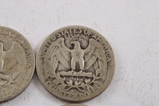 4 Washington Silver Quarters 1937,1947,1944D,1944 - As pictured. Please ask questions and read terms & conditions before bidding.