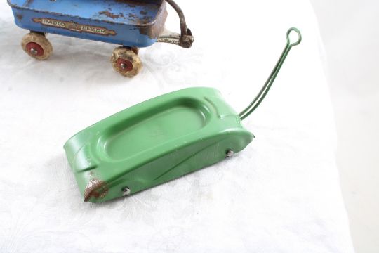 Wyandotte Racing Wagon, Radio Flyer, Postal Scale - Wyandotte Green racing Airflow Wagon 4" long, Radio Flyer Wagon Century of Progress 1933 World's Fair Souvenir measures 6 1/2" long with handle, 3" Mid-Century Modern Rexall Letter Postal Scale. As pictured. Please ask questions and read terms & conditions before bidding.