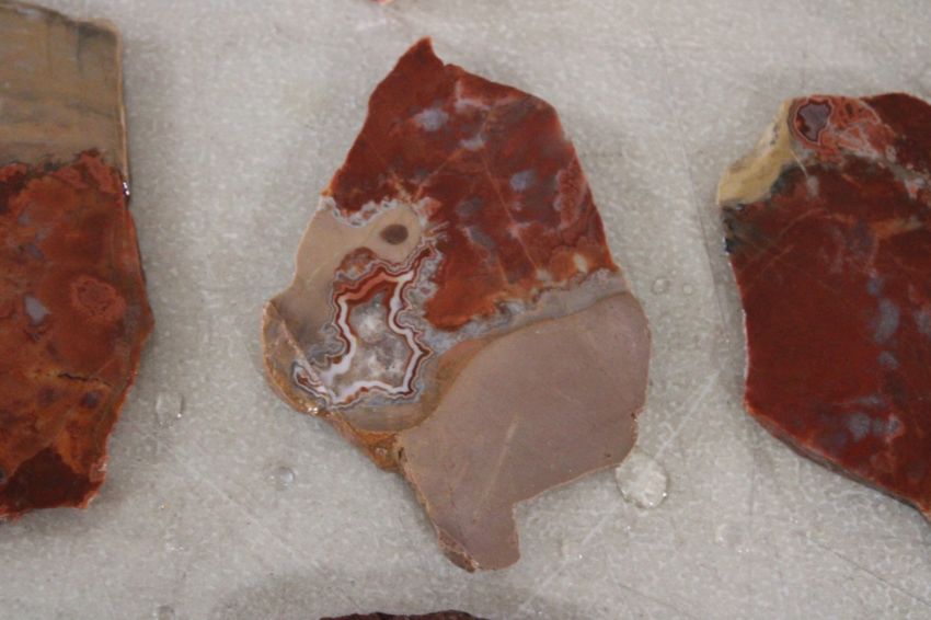 1.15 Pounds Sliced Agates - As pictured. Please ask questions and read terms & conditions before bidding.