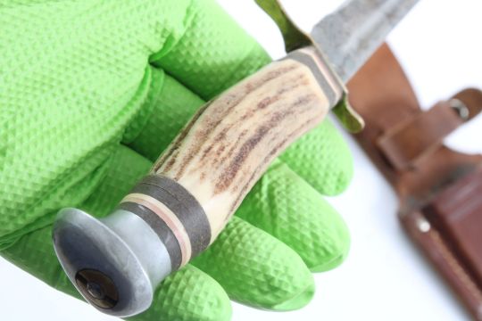 Edge Brand Fixed Blade Knife Solingen Germany - Includes Leather Sheath as pictured. Please ask questions and read terms & conditions before bidding.