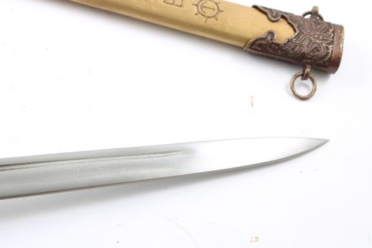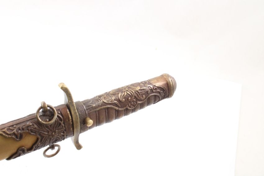 Japanese Military Navy Dagger Short Sword - Brass Handle with metal Sheath that measures 17 1/2" long in sheath, as pictured. Please ask questions and read terms & conditions before bidding.