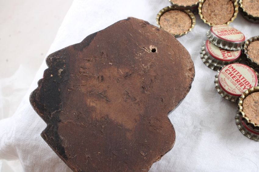 Soda Cork Bottle Caps, Syroco Indian Wall Hanging - Syroco Native American Indian Maiden Wall Hanging measures 4 3/8" Tall and 57 Gopher Bottling Company Cherry Cork Bottle Caps Unused. All as pictured. Please ask questions and read terms & conditions before bidding.