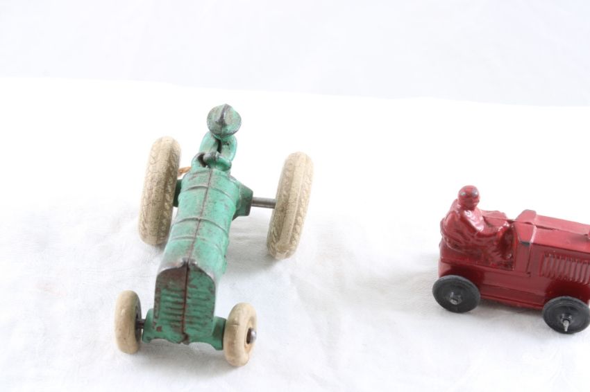 Arcade Cast Iron Tractor, Barclay Tractor - Arcade tractor is 3 1/2" Long and Barclay Tractor 3" long. Both as pictured. Please ask questions and read terms & conditions before bidding.