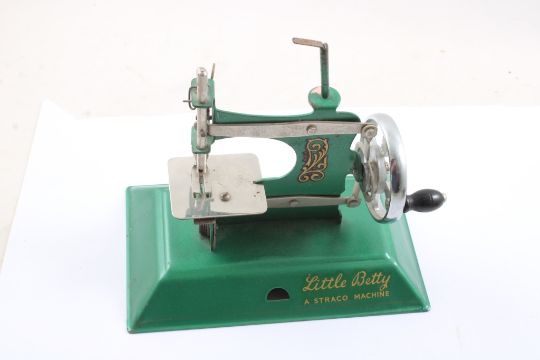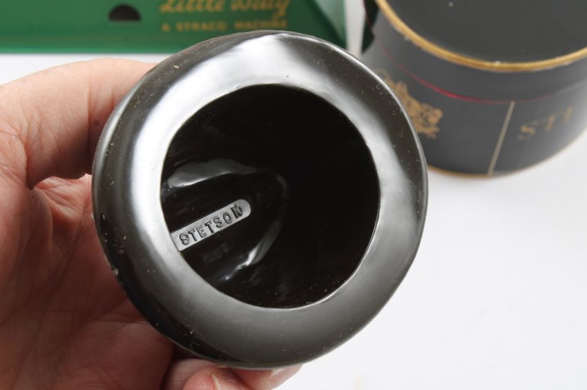 Little Dolly Sewing Machine, Stetson Fedora Sample - Straco "Little Betty" Children's Sewing Machine - Works and Stetson Sample Fedora Hat in Stetson Hat Box both as pictured. Please ask questions and read terms & conditions before bidding.