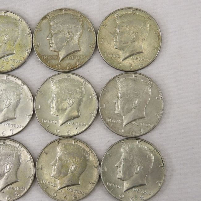 10 1964 & 9 1965-1970 Silver Kennedy Half Dollars - Please ask questions and read terms & conditions before bidding.