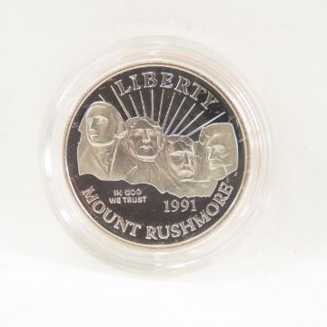 1991 US Mount Rushmore 2 coin proof set - Silver Dollar & Copper/Nickel Half Dollar Anniversary Coins with box and paperwork Please ask questions and read terms & conditions before bidding.