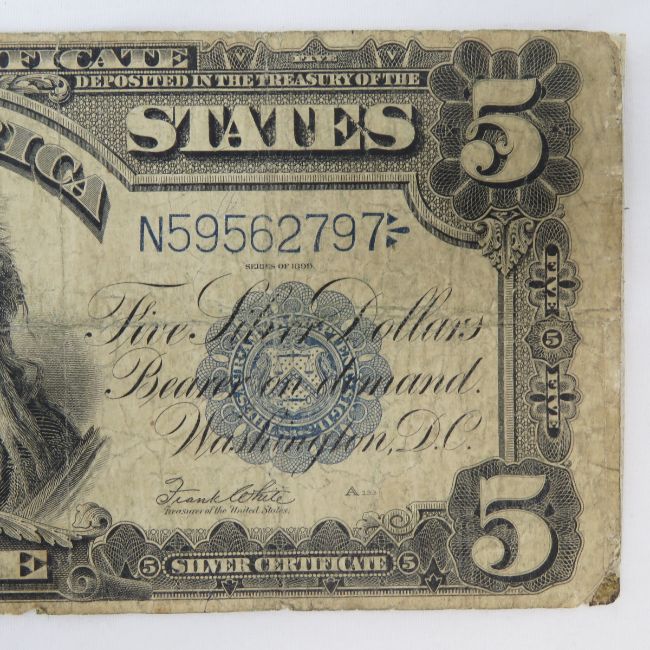 1899 $5 Silver Certificate Indian Chief Large Note - Please ask questions and read terms & conditions before bidding.