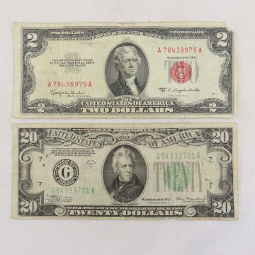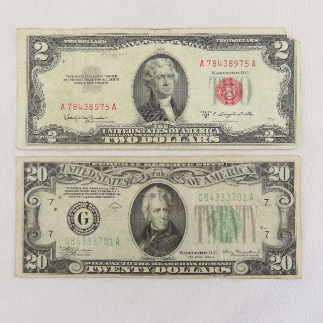 US & Canadian Currency 1934-1986 - 1934 $20, 4 1953 $2, 1 1963 $2, 1954 $1 & $2 Canadian, 1937 Canadian $1 & 1986 Canadian $2 Please ask questions and read terms & conditions before bidding.