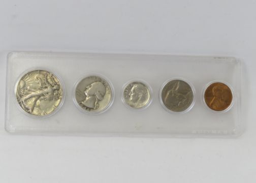 1946 US Type Set, Walking Liberty Half - Washington Quarter & Roosevelt dime, Liberty V Nickel & Lincoln Head cent in case Please ask questions and read terms & conditions before bidding.