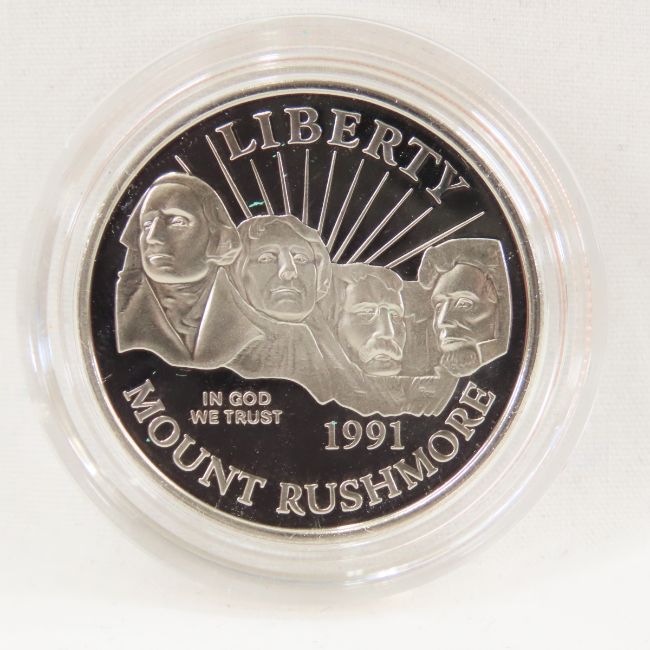 1991 US Mount Rushmore 2 coin proof set - Silver Dollar & Copper/Nickel Half Dollar Anniversary Coins with box and paperwork Please ask questions and read terms & conditions before bidding.