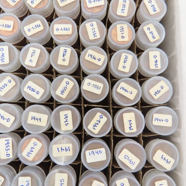 100 Rolls of Lincoln Wheat Cents - $50 face - rolls look full and have date stickers, 1 paper roll, we did not count or check dates but they appear full and correct Please ask questions and read terms & conditions before bidding.