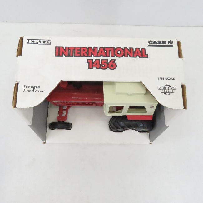 3 Ertl International Tractors, 1456 and More - Ertl International 856 Tractor 'Dealer Edition', Ertl International 1456 Tractor, Ertl 1586 Tractor with Cab, All 1/16 Scale Die Cast Metal, All Open-Face Boxes - 1586 Cab Shows Sun Damage Please read terms & conditions and ask questions before bidding.