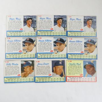 13 1962 POST Cereal baseball Cards- Many Stars - Maris (3), Killebrew (3), Martin, Mays (3) & others Please read terms & conditions and ask questions before bidding.