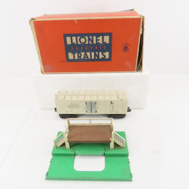 Lionel 3356 Horse Set, 3462 Milk Set & Platform - Horse set has 5 horses, platform & train car with directions, 3462 operating Milk Car has platform & train car in original box (damage) Station Platform is missing advertising signs in original box (damage), untested Please read terms & conditions and ask questions before bidding.