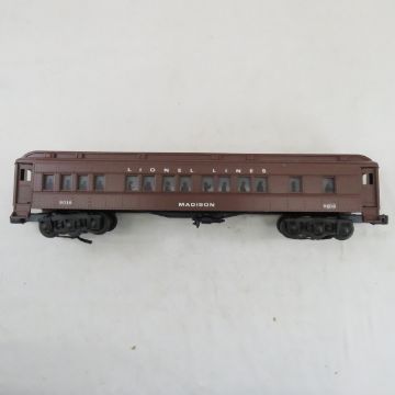 4 Lionel Lines Bakelite Madison Cars in Boxes - 6-19108 Sager Place Observation car, 6-19016 Madison passenger car, 6-19017Manhattan passenger car, 6-19015 Irvington passenger car, bakelite bodies,O Gauge, in boxes, untested Please read terms & conditions and ask questions before bidding.