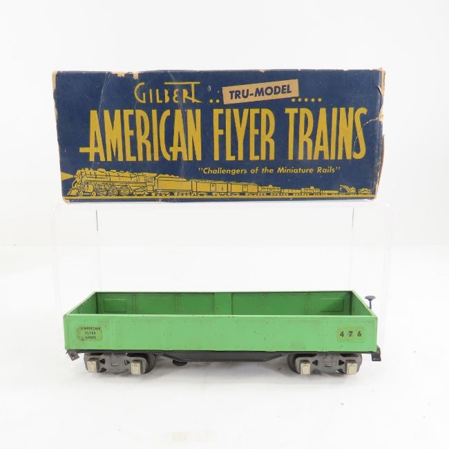 American Flyer set with 561 engine & 5 cars - 561 engine is damaged, 558 PRR tender has warp, no # log car, 476 gondola, 488 searchlight- broken yoke, 480 tanker, 484L caboose, 675 remote uncoupler, all in boxes (some damage), O gauge, untested Please read terms & conditions and ask questions before bidding.