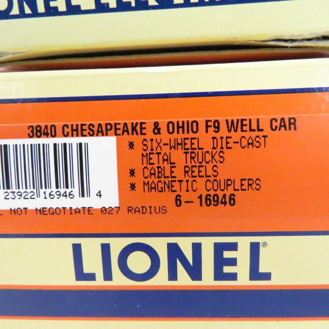 Lionel Romeo Car, and 2 Well Cars in Box - UP "Romeo" baggage car 6-16066, 3840 C&O F9 well car, 6983 Pennsylvania F9 Well car, in original boxes Please read terms & conditions and ask questions before bidding.