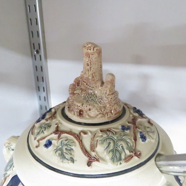 Gerz Castle Medallion Hot Cider Barrel, Lid & Cups - 12 3/4" tall 6 qt barrel with lid and metal ladle, 14 cups, made in Germany Please ask questions & read terms and conditions before bidding.