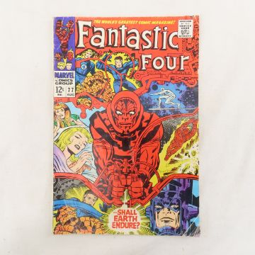 Vintage Pencil Tin, Game Cards, Comics & More - Almost 2" Stack of unused Game Cards, Glass Jar in Case with Lid featuring the Tower of Saint Vincent, Lunette J.B.J. Goggles (broken), Fantastic Four and Avengers Comics Please ask questions & read terms and conditions before bidding.