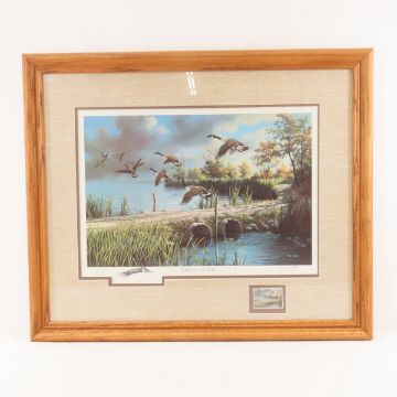 Ken Zilla lifting to the north duck stamp print - framed, measures approx 24.5x21" Please ask questions & read terms and conditions before bidding.
