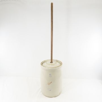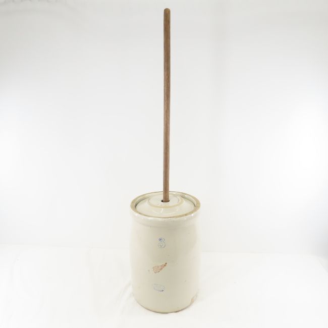 3 Gallon Union Stoneware Butter Churn with Plunger - small wing, hairline, good lid marked 3&4 Please ask questions & read terms and conditions before bidding.