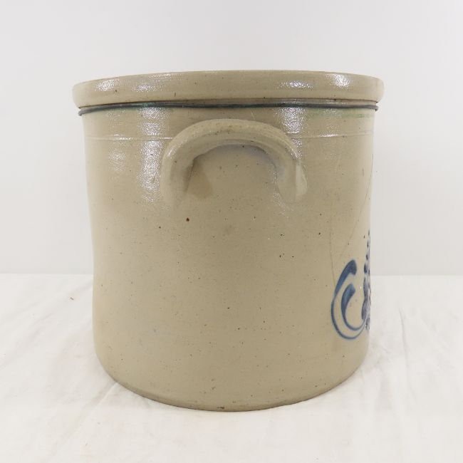 Adam Green New Brunswick 3 gallon stoneware crock - cracked, wire wrapped Please ask questions & read terms and conditions before bidding.