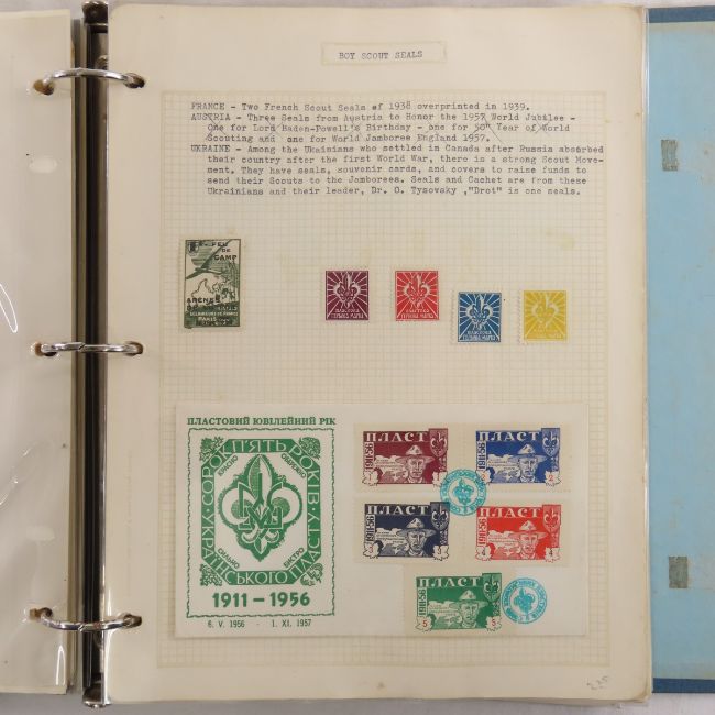 Vintage Boy Scout Stamps, Envelopes, Ephemera - 3 Ring Binder of Boy Scouts of America Stamps, Envelopes, Newspaper Clippings and Ephemera Please ask questions & read terms and conditions before bidding.