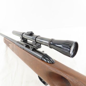 Mossberg 377 Plinkster .22LR Rifle with Scope-20" AC-KRO-GRUV barrel, tube feed, textured poly wood grain stock with thumb hole, SN# M41965. Weaver Marksman 4x scope. FFL transfer required, please know local laws before bidding Please read terms & conditions and ask questions before bidding.