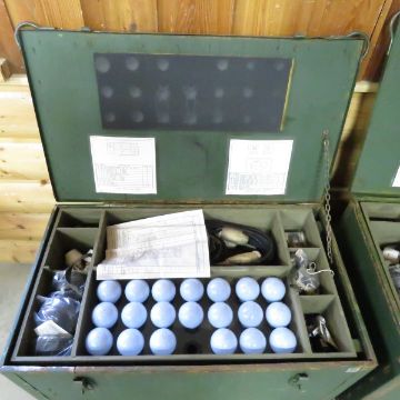 Military Tent Light Kit-2 wood boxes approx 100 pounds each and measure 31x18x18" (Dollies not included) Please read terms & conditions and ask questions before bidding.