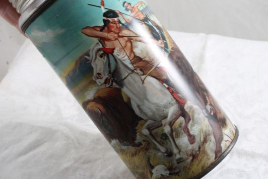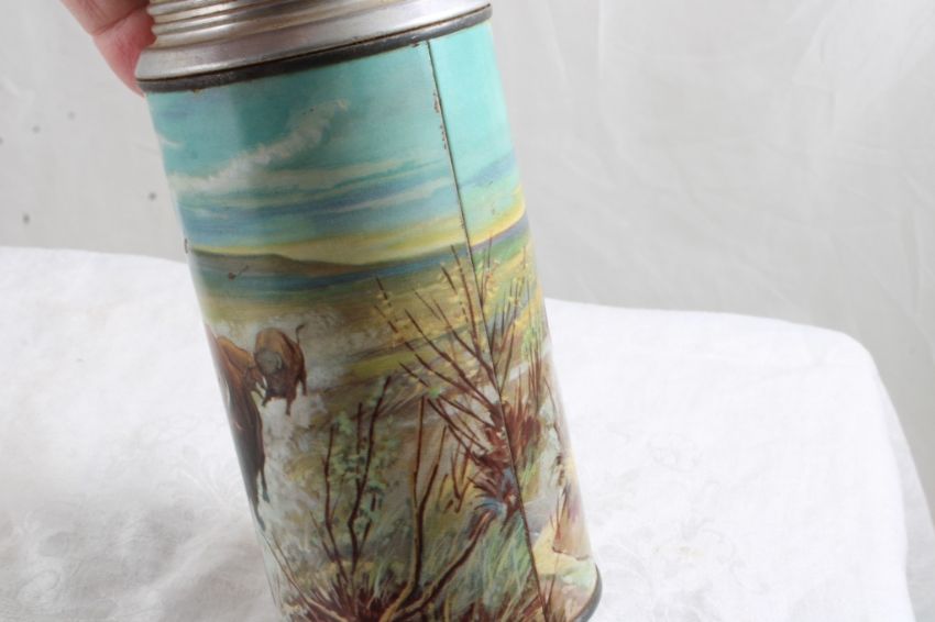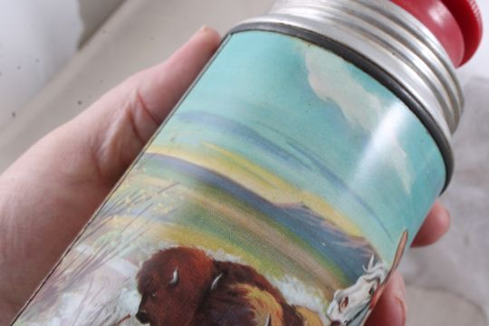 1957 Brave Eagle American Thermos Bottle Co. - Missing Cup. As pictured. Please ask questions and rerad terms & conditions before bidding.