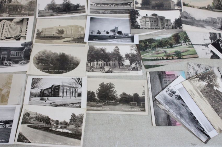 100 Antique Iowa Postcards Many RPPC's - Many Cities in Iowa as pictured. Please ask questions and rerad terms & conditions before bidding.