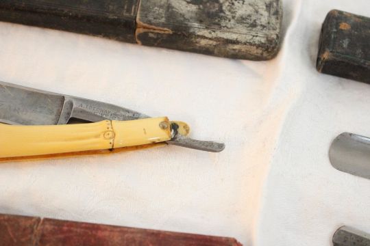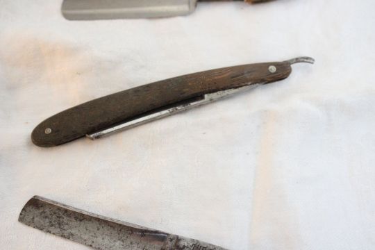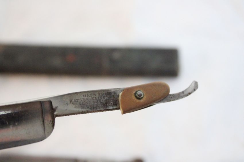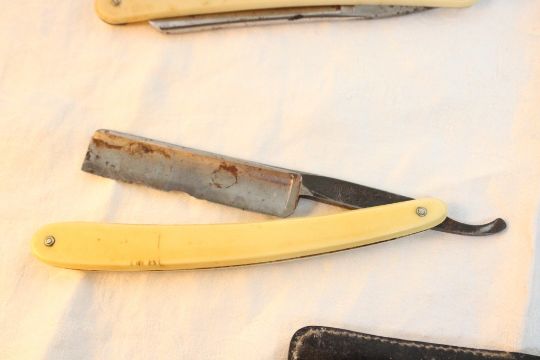 7 Straight Razors, Carborundum Sharpening Stone - Jungs #80, Spennett Shaper, The Hibbard, John Rieder The Baldy, Kayser Ellison (broken handle), A Tredway & Sons and 1 with no name on it. All as pictured. Please ask questions and rerad terms & conditions before bidding.