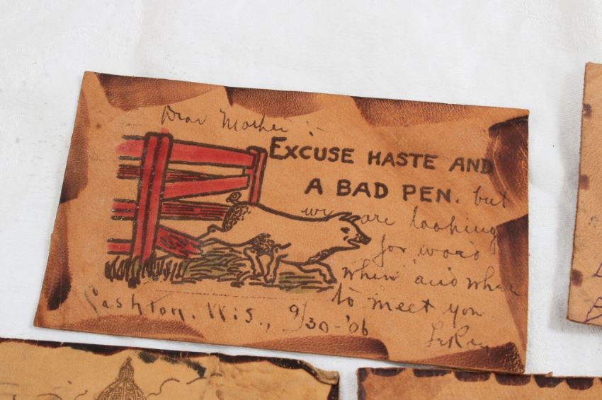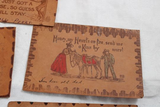 11 Antique Leather Postcards - As pictured. Please ask questions and rerad terms & conditions before bidding.