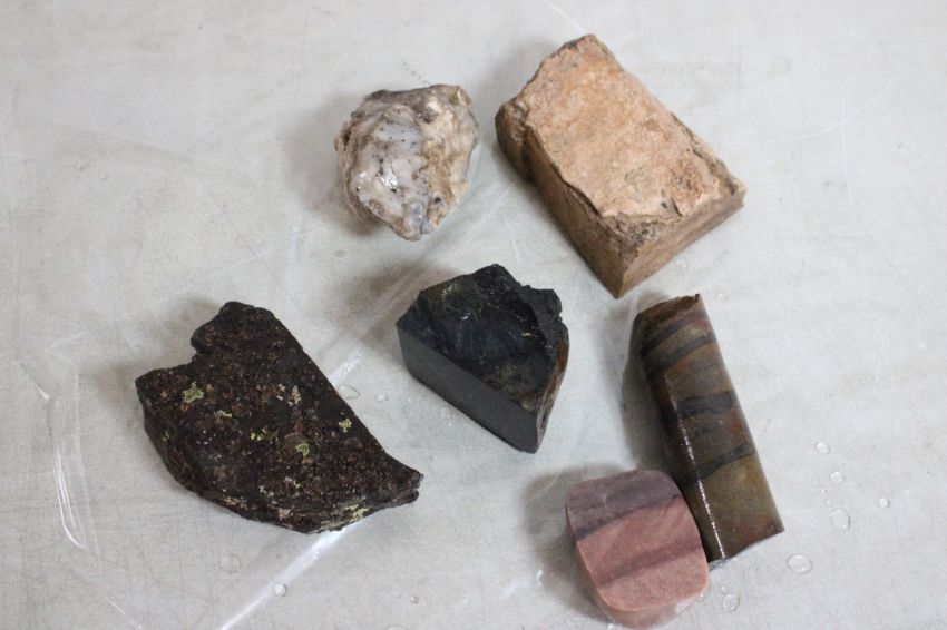 Obsidian Core Sample, Quartz & Other Rocks 11 Lbs. - As pictured. Please ask questions and rerad terms & conditions before bidding.