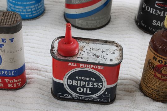 Advertising Oil & Other Tins/Cans/Bottles - Hoppe's Powder Solvent, Joni Warmer Fluid, Mercury 2 Cycle Outboard Motor Oil, Duli-Color Auto Spray, Ford Spray Enamel, Hoppe's Powder Solvent, Werner Liquid Sodder, American Dripless Oil, Monkey Grip Tire &Tube Repair, Sears Tar Remover, Hoppe's Powder Solvent. All as pictured. Please ask questions and rerad terms & conditions before bidding.