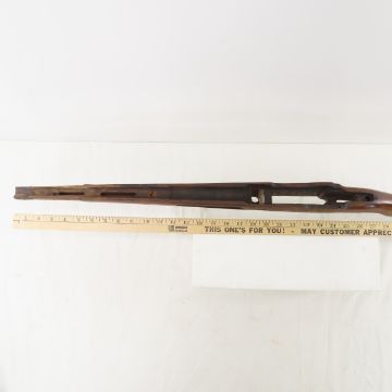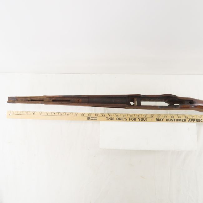 4 Mauser Walnut stocks - 1) 39" with nice grain, minimal wear, wrist marked " 325850". 2) 37.25" with side grooves, left side has 22799 crossed out and "26025", 3) 38" has repair near butt, metal plate has small mark with circle, lower sling loop, recoil lug. 4) 38" with crack near trigger, recoil lug. Please ask questions & read terms conditions before bidding.