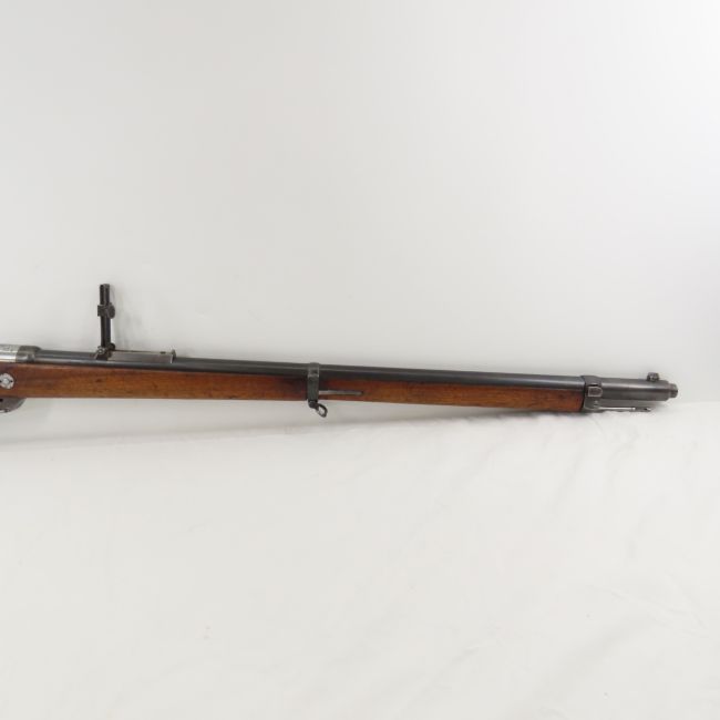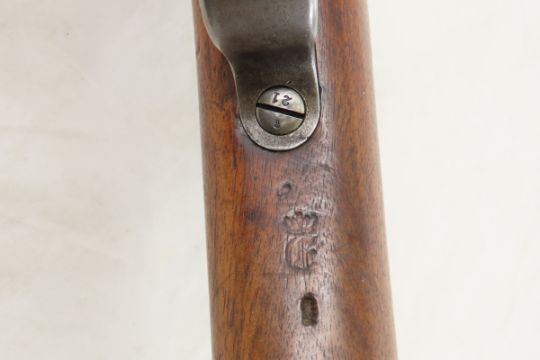 1890 Spandau Gew 88/05 Rifle 7.92 S Patrone - ANTIQUE, SN#8900n, Nice barrel, minimal dings in Wood stock. No visible import marks. Bolt is missing header. Receiver top marked "S crown SPANDAU 1890", left side marked " 8900 n Gew 88", right side marked with 3 crown proofs. Bolt handle marked "8900n", other marks are "00" and proofs. 29.1" barrel, front blade sight, cleaning rod with crown proof, rear v notch ladder sight to 2,500 meters leaf marked "crown proof Y 37", slide marked "crown proof 37". Front band marked "crown proof 23:", lower band marked "00 crown 2.G.G.R.R./9.119" possible regiment mark. recoil lug & bolt stop have crown proof. Trigger guard has 2 crown proofs and " 8900", floor plate has crown proof, one screw "crown 21", other "crown 66". Wood stock has 2 crown proofs and "8900". Steel butt plate marked "N/LTQZ". OAL 49". ANTIQUE no transfer required, please know local laws before bidding. Please ask questions & read terms conditions before bidding.