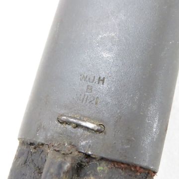 Australian Pattern 1907 Sword Bayonet & Scabbard - Overall Length: 21.75", Blade: 17", Ricasso: 2 Stars, Bend Test "X" (other side not legible), Crosspiece Stamp: 2, Scabbard Stamp: WUH over B M/121 Please ask questions & read terms conditions before bidding.