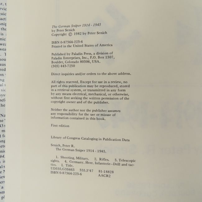 The German Sniper book Peter R. Senich 1st Ed - First Edition, 1982 - Hardcover Please ask questions & read terms conditions before bidding.